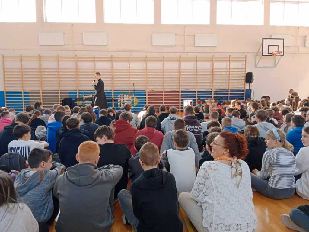 Ks. Paweł przybył do nas wraz z dwuosobową grupą ewangelizacyjną Chełmskiego Centrum Ewangelizacji, które tworzy środowisko ludzi wierzących, którzy dzięki osobistemu spotkaniu z żywym Bogiem oraz poprzez głęboką formację duchową i intelektualną,głoszą Dobrą Nowinę wszystkim, którzy jej potrzebują. Była także możliwość nabycia publikacji ks. Pawła przy wyjściu z kościoła. Spotkania dla dzieci i młodzieży odbywały się zarówno w kościele jak również w budynkach szkolnych.